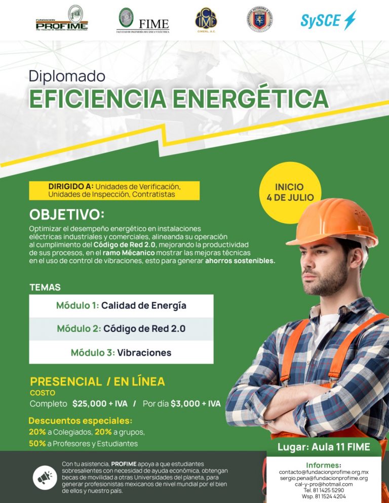 Como parte de las actividades de la fundación PROFIME, se llevó a cabo el Diplomado en Eficiencia energética, en su edición número 18 del día 4 de julio al 30 de agosto de 2025, con una duración de 9 semanas. Los asistentes estuvieron cursando de manera tanto presencial como virtual, los días viernes y sábado en el intervalo de fechas antes mencionado. Gracias a este diplomado, se lograron recaudar montos económicos para otorgar becas de movilidad a estudiantes de la Facultad de Ingeniería Mecánica y Eléctrica.